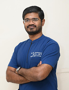 Dr. S. Gokul Krishna is a periodontist and implantologist dedicated to advanced patient care. His expertise includes flap surgeries, bone regeneration, implant placements, and managing peri-implantitis.